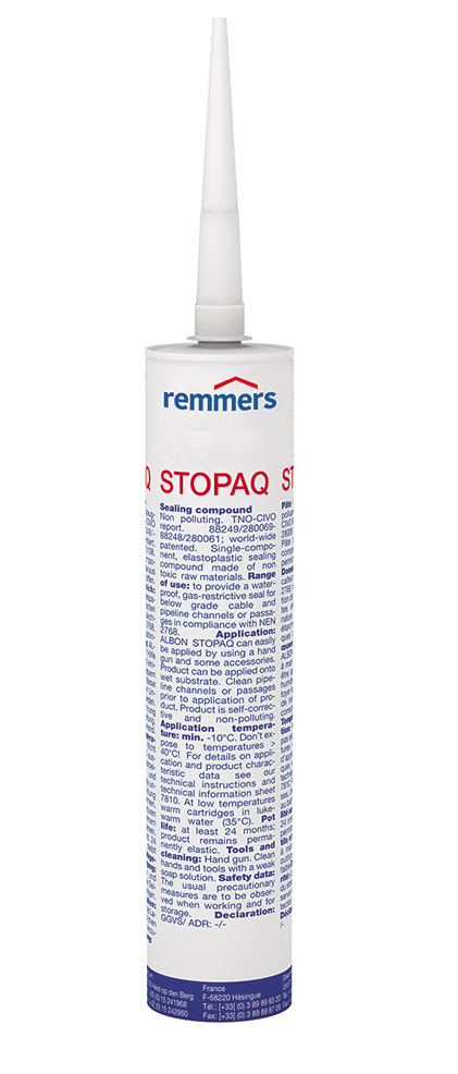 Stopaq универсально применяется для герметизации кабельных трубопроводов и обсадных труб, не переходит в твердое состояние, сохраняет длительную пластичность, 100% водо- и газонепроницаем, а также устойчив к старению.