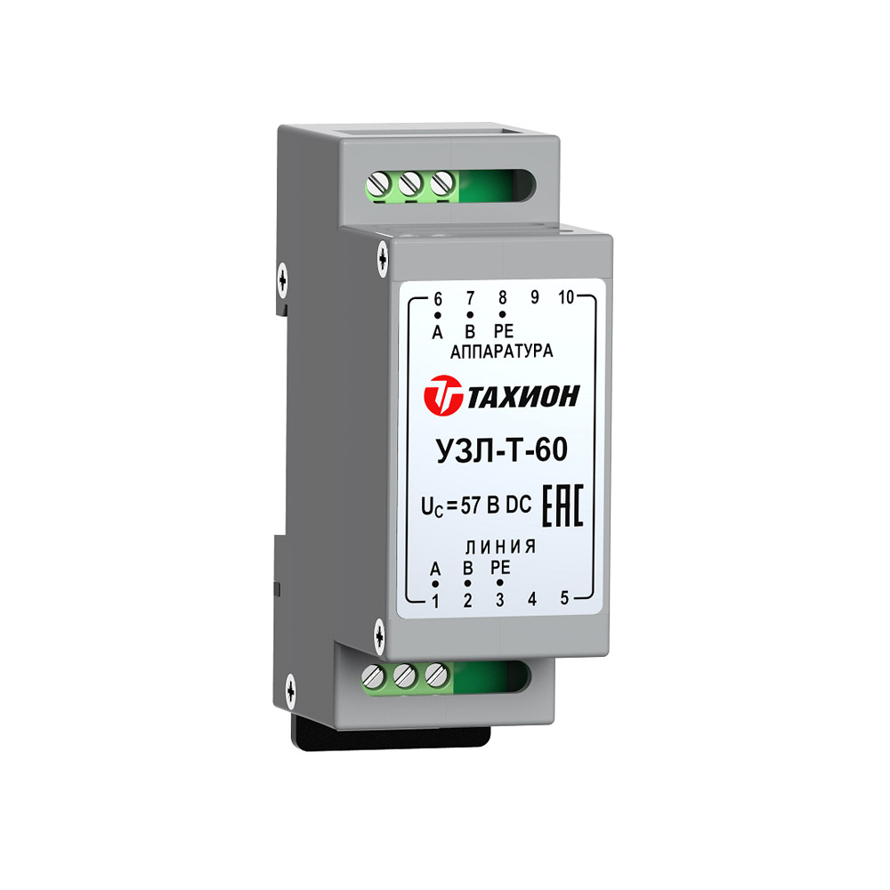 УЗЛ-Т-60 по техническим и эксплуатационным характеристикам удовлетворяет требованиям ГОСТ IEC 61643-21. Степень защиты IP20 в соответствии с ГОСТ 14254. Конструктивно УЗЛ-Т-60 выполнено в пластмассовом корпусе с креплением на 35мм DIN-рейку. Выпускается по техническим условиям ТУ 26.30.50-077-31006686-2017.