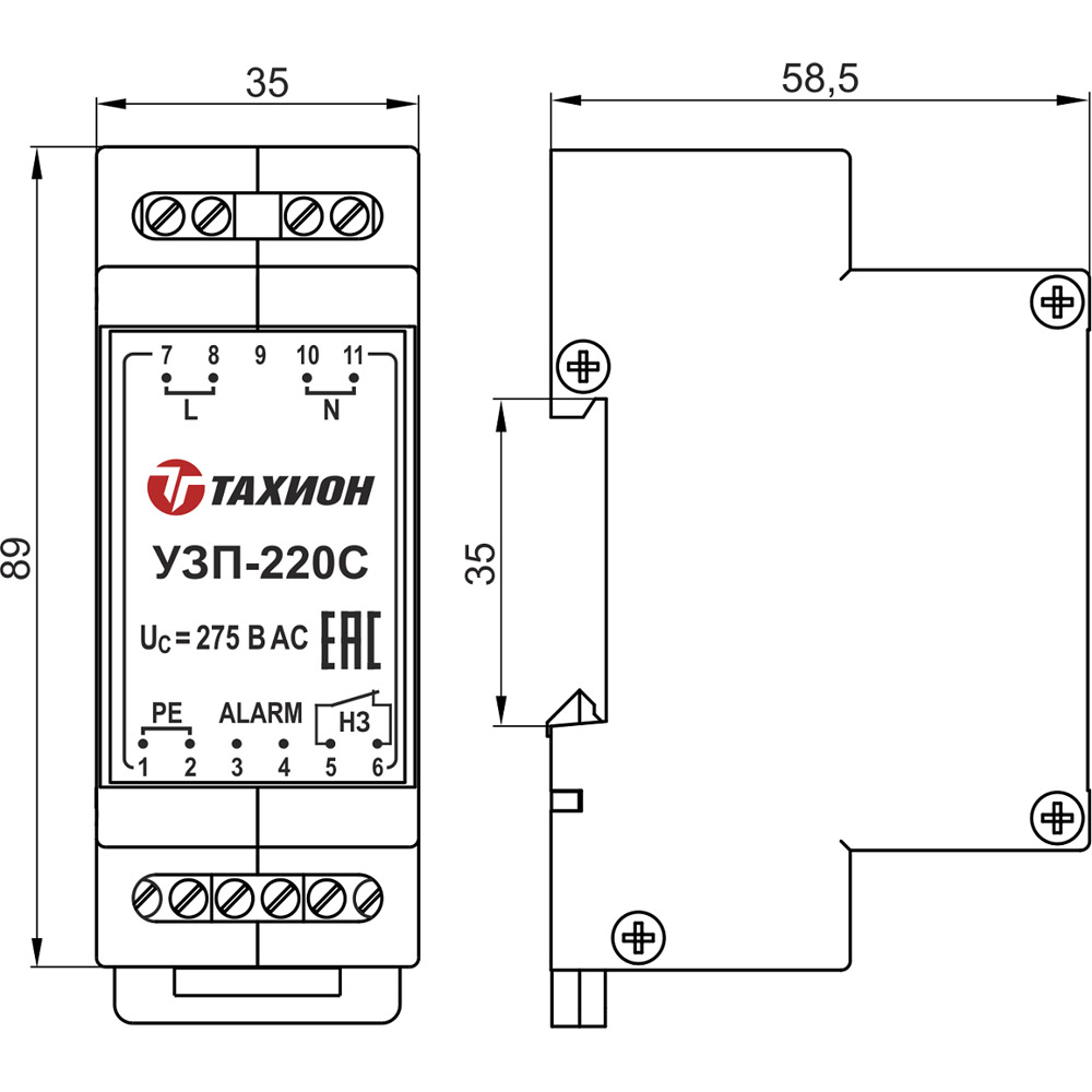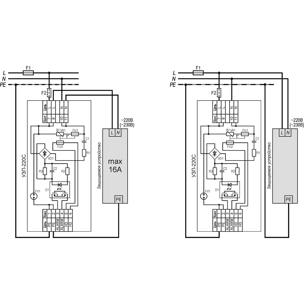 УЗП-220С – однофазное устройство защиты класса III, по техническим и эксплуатационным характеристикам удовлетворяющее требованиям ГОСТ IEC 61643-11, ГОСТ Р 50571.4.44