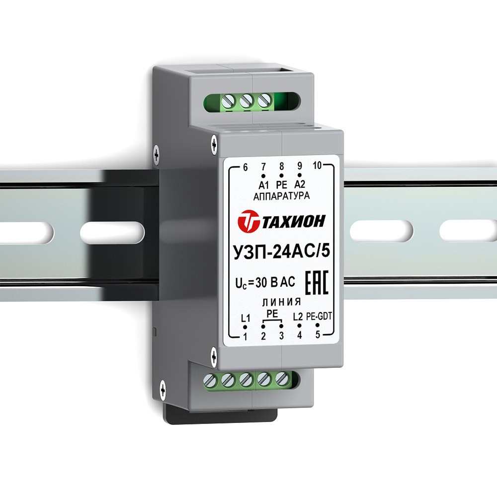 Устройство защиты УЗП-24AC/5 предназначено для защиты цепей вторичных источников электропитания распределительных сетей аппаратуры промышленной автоматизации, систем сигнализации и прочих питаемых устройств от импульсных перенапряжений (грозовых, электростатических разрядов и др.).