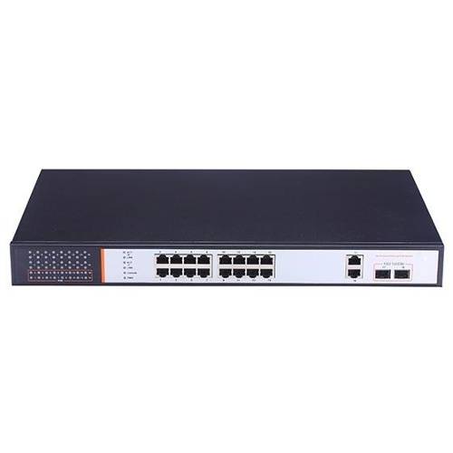 16 RJ-45 10/100M портов + 2 RJ-45 1000М комбинированных гигабитных порта + 2 оптических порта SFP