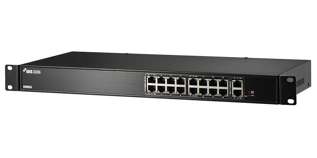 Коммутатор IDIS DH-2018 с поддержкой PoE, второго уровня (L2), предназначен для соединения нескольких устройств системы IP-видеонаблюдения или нескольких сегментов сети. Коммутатор уровня 2 обрабатывает и регистрирует МАС–адреса поступающих фреймов, осуществляет физическую адресацию и управления потоком данных (VLAN, мультикаст фильтрация, QoS). Наличие двух Гигабитных портов uplink, позволяет осуществить каскадное соединение нескольких коммутаторов.