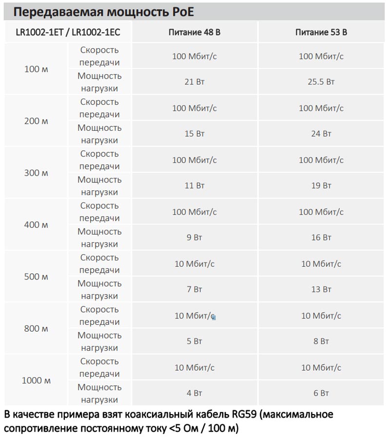 - 1000 м (10 Мбит/с, RG-59)