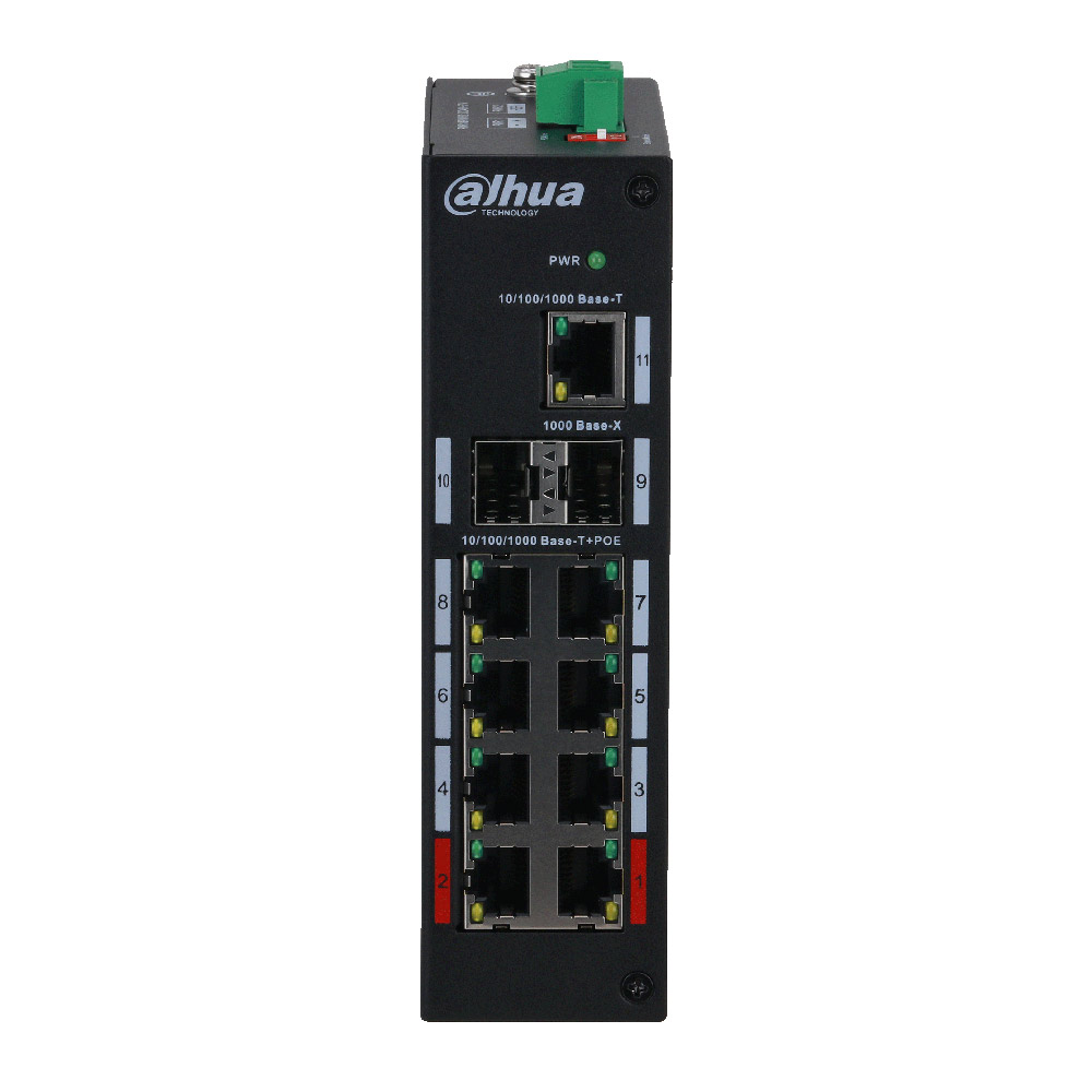 PFS3211-8GT-120 – неуправляемый защищенный коммутатор с 8 портами 10/100/1000 Мбит/с, каждый из которых поддерживает подачу питания PoE. Он оснащен 8 основными портами Ethernet со скоростью 10/100/1000 Мбит/с, 2 портами uplink uplink SFP со скоростью 1000 Мбит/с и 1 портом Ethernet uplink со скоростью 10/100/1000 Мбит/с. Данная модель поддерживает два режима передачи (увеличенная дальность вкл. / выкл.). Красный порт поддерживает стандарт IEEE802.3bt и Hi-PoE. Максимальная мощность подаваемого на порт питания составляет 120 Вт. Он также поддерживает сторожевой таймер PoE, что позволяет избежать обслуживания и перезапуска подключенных сетевых устройств, реализует интеллектуальное управление и сокращает эксплуатационные расходы.