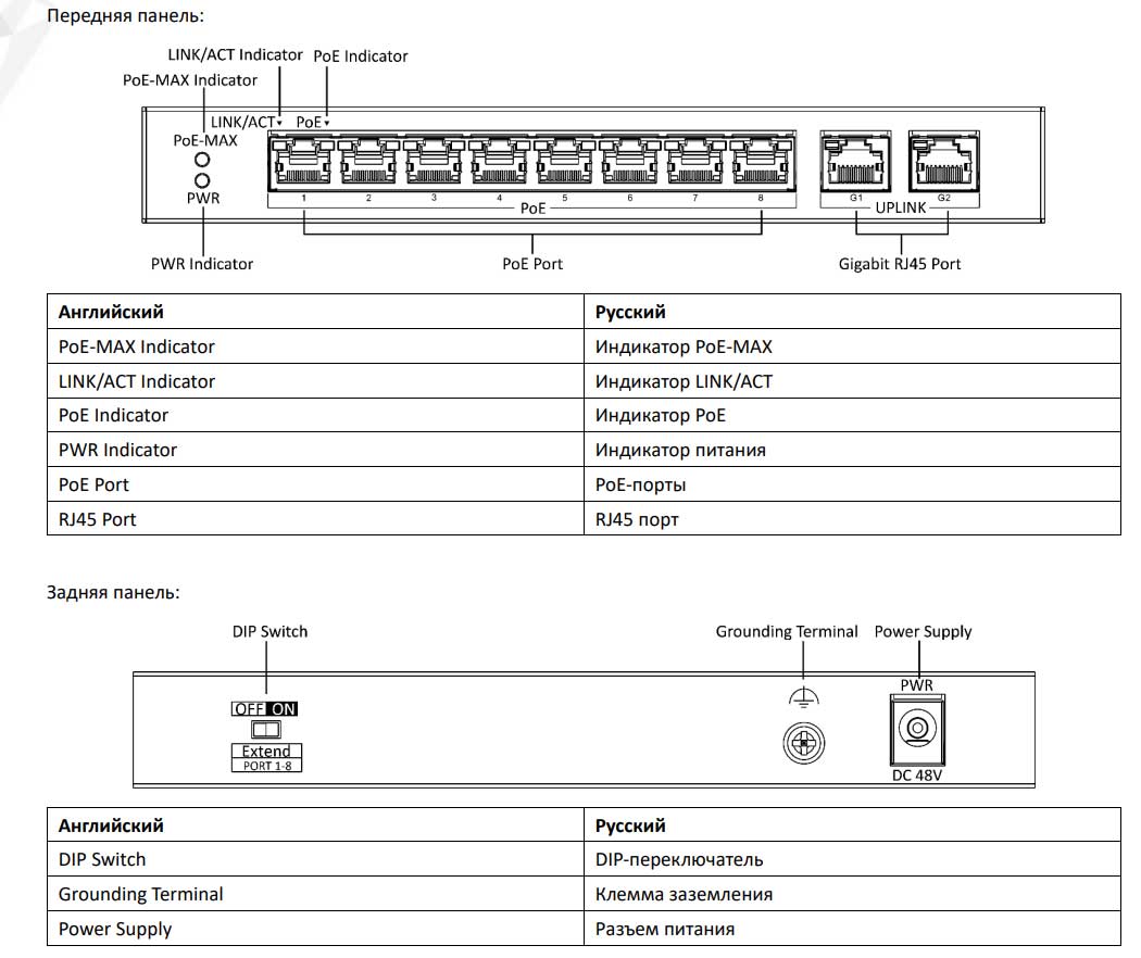 • Количество портов: 8 × 10/100M PoE-портов, 2 × 10/100/1000М порта