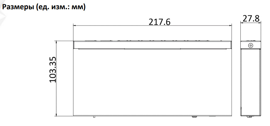 • Размеры: 217.6 × 103.35 × 27.8 мм (8.57 × 4.07 × 1.09″)