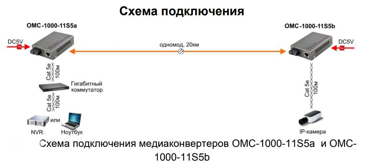 Медиаконвертеры OMC-1000-11S5a и OMC-1000-11S5b предназначены для работы в паре.