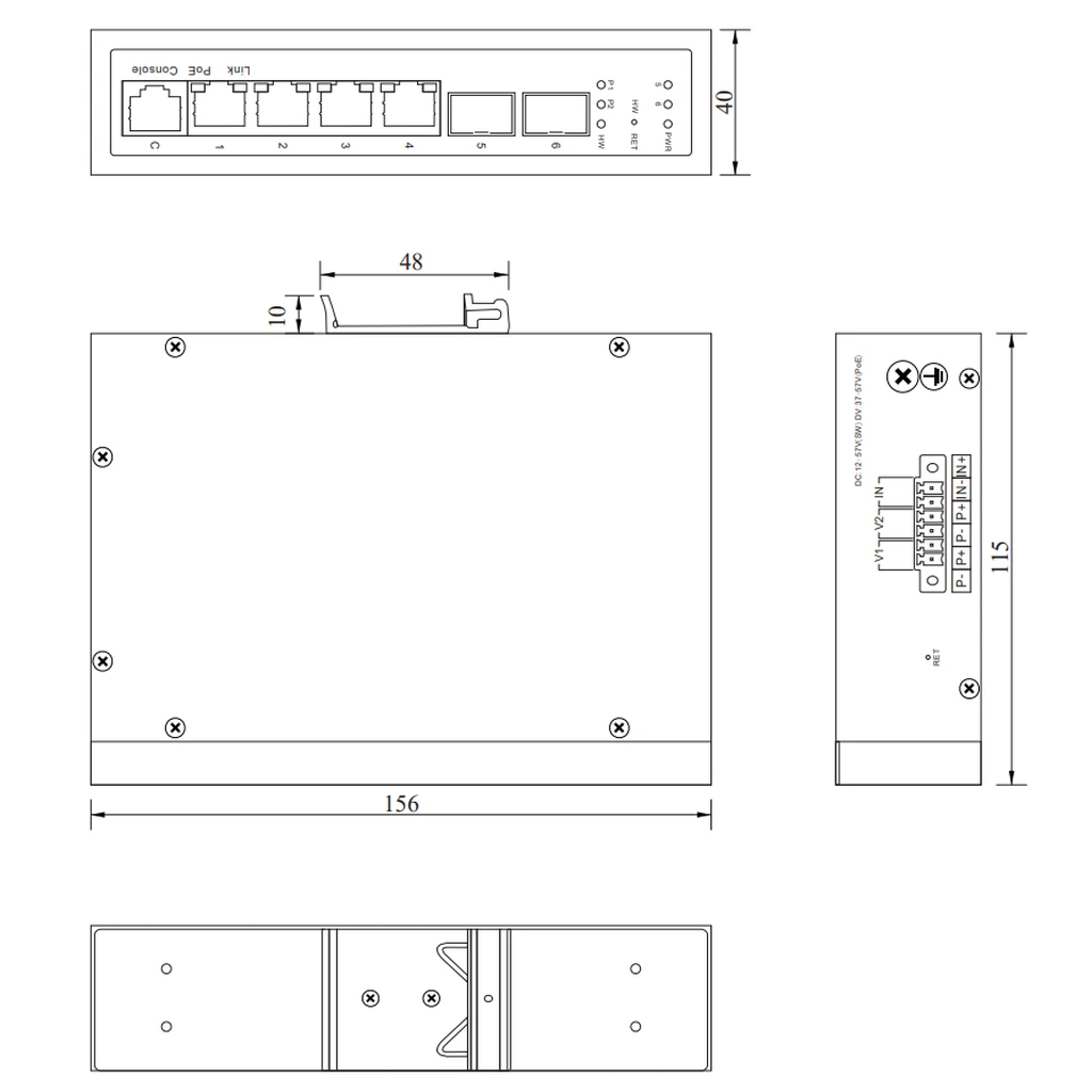 Модель оснащена четырьмя гигабитными PoE-портами с поддержкой стандартов IEEE 802.3af/at/bt, что позволяет питать устройства мощностью до 90 Вт на каждом порту. Общий бюджет PoE составляет 180 Вт. Дополнительно коммутатор имеет два SFP-порта для оптических подключений и RJ-45 консольный порт для локального управления. Устройство поддерживает широкий спектр сетевых протоколов и функций управления, включая VLAN, QoS, ACL, IGMP Snooping и многое другое, что делает его универсальным решением для сетей любой сложности.