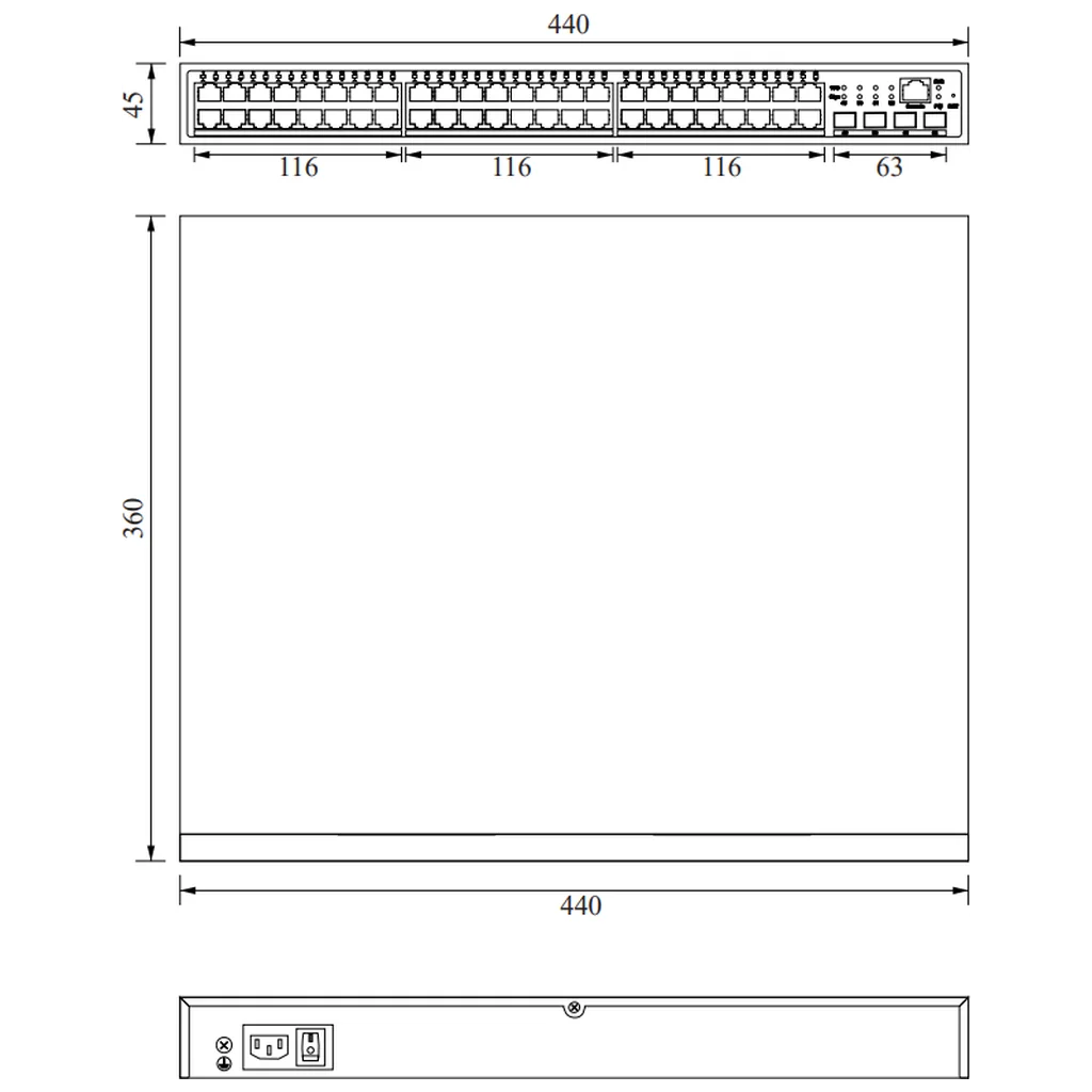 - Поддержка до 52 портов, включая 48 PoE портов и 4 SFP+ uplink порта.