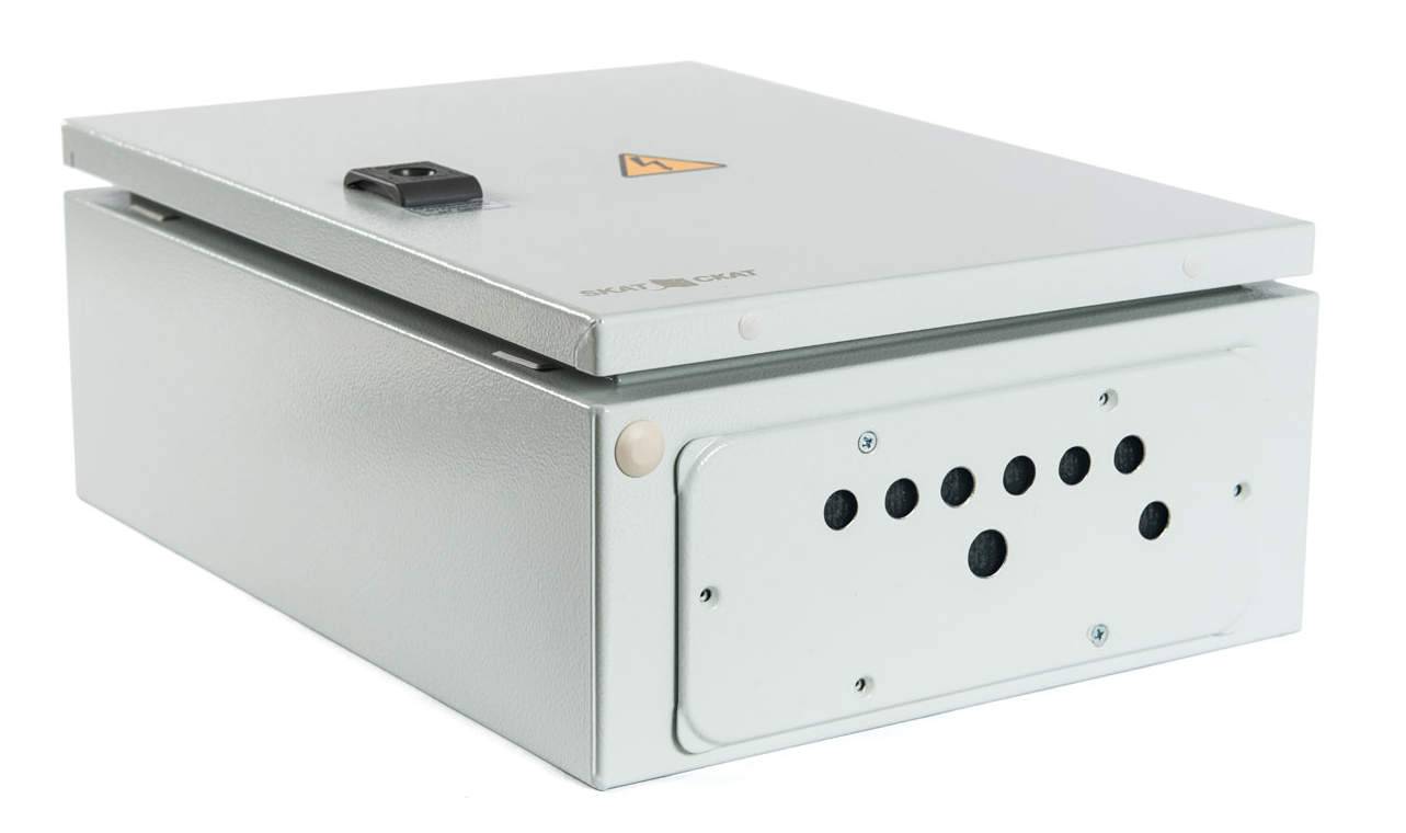 Металлический уличный корпус с классом защиты IP65. Температурный диапазон -45°С ... +50°С. Встроенный УЗИП III класса. Климатическая установка с функцией термостатирования. Защита от холодного пуска оборудования.