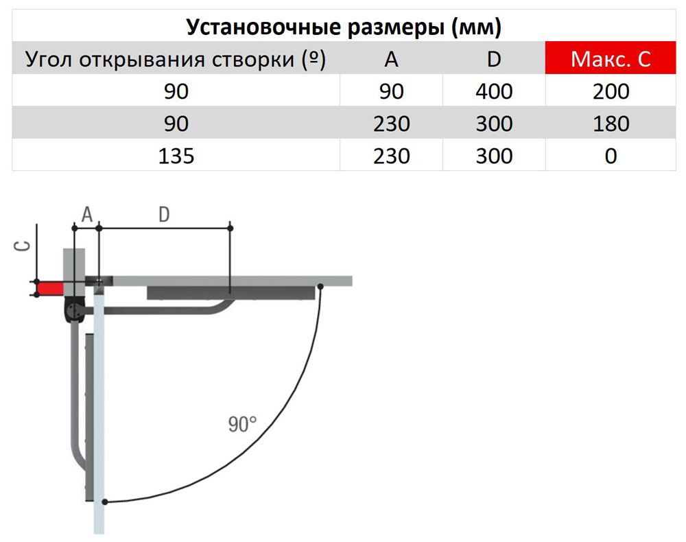 • Время открывания на 90° (с): РЕГУЛИРУЕМОЕ