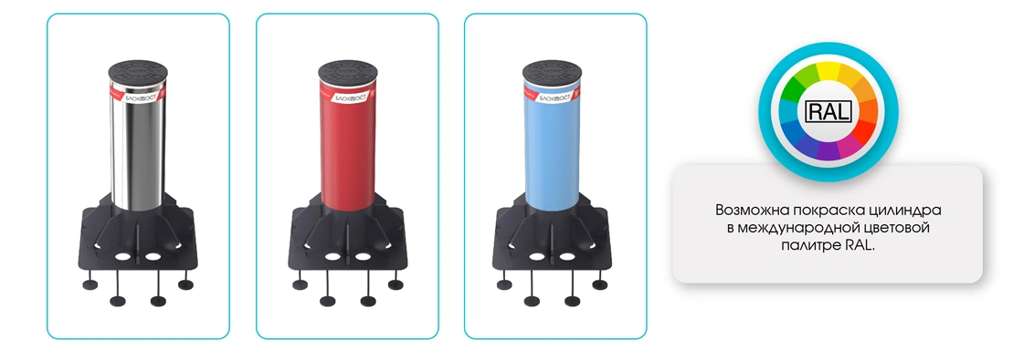 - Порошковая окраска надежно защищает болларды от механического воздействия и агрессивной среды. Устойчивое к царапинам и химикатам покрытие гарантирует длительный срок службы заградительных конструкций.