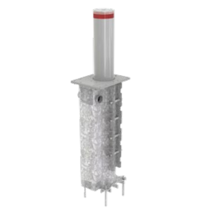 • Кожух для крепления болларда: Диаметром 338 мм, из горячеоцинкованной стали, спроектированная таким образом, чтобы никакое воздействие в результате удара автотранспортного средства не сместило ее после установки. Левые и правые отверстия для гидравлического шланга и кабельного ввода используются с обеих сторон в зависимости от положения ГСУ и местных условий. Имеется соединение для установки ливнестока. Простая установка с наземной монтажной пластиной посредством болтового соединения с фундаментным основанием. Предусмотрен простой доступ к гидравлическому шлангу и кабелям.
