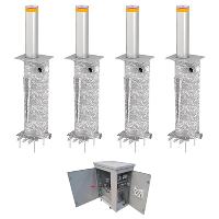 Стандартная сеть 380 В перем. тока, 3 ф., 50/60 Гц, двигатель мощностью 1,1-11 кВт (в зависимости от количества боллардов в комплекте и включенных принадлежностей). Опционально предусмотрена работа с напряжением 24 В пост. тока в случае сбоя сетевого питания.