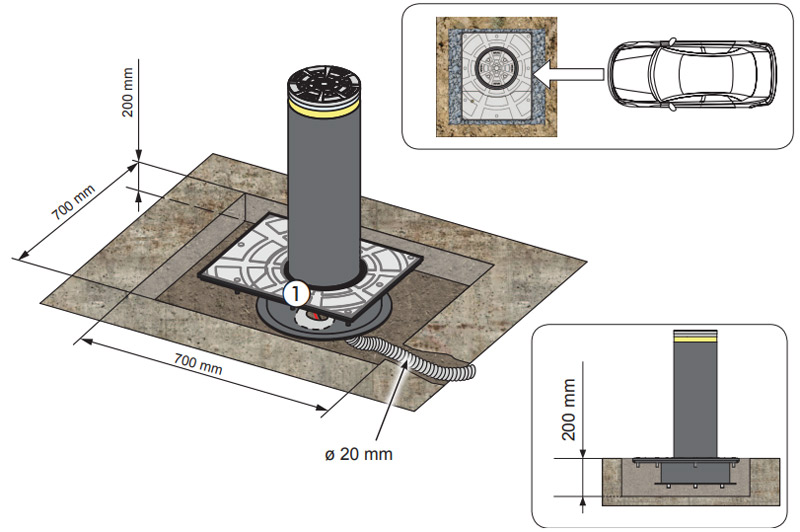 Благодаря своей простоте в установке болларда, не потребуется трудоемких и долгих земляных работ. Обладает высокой прочностью и сопротивлением проникновения в 35кДж.