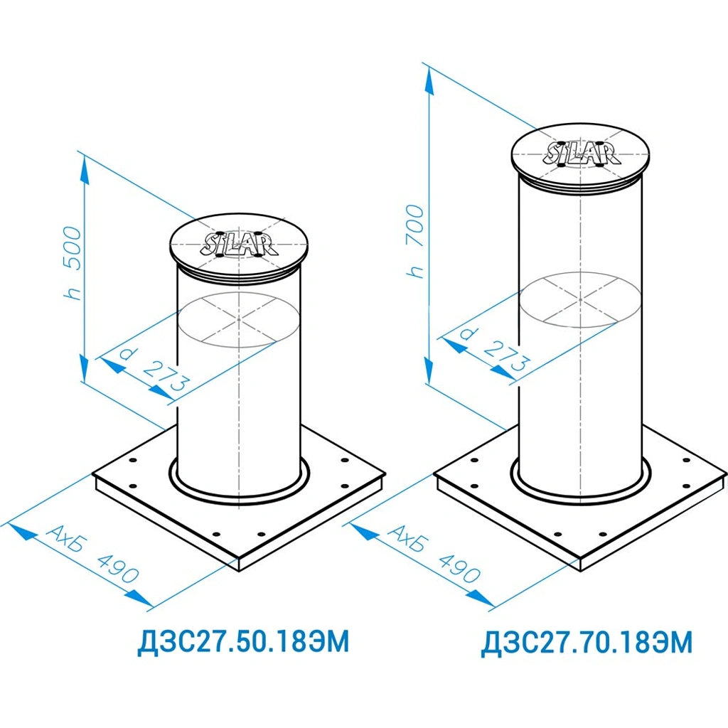 SILAR ДПС 27.50.18ЭМ - электромеханический боллард. Электромеханические болларды с толщиной стенки 18 мм можно применять на стратегических объектах, так как конструктивно они полностью соответствуют гидравлическим моделям. Однако в отличии от гидравлических боллардов имеют коэффициент использования 25% поэтому их не желательно применять на проездах с высокой интенсивностью движения.