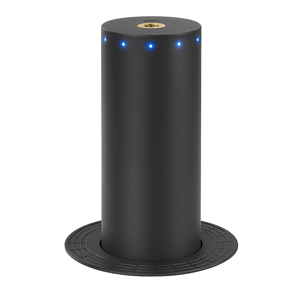 Инженерное исполнение конструкции исключает возможность несанкционированного вмешательства или повреждения. Внутренние механизмы полностью защищены от влаги и пыли, а низкое энергопотребление (всего 0,03 кВт) делает устройство экономичным и удобным в эксплуатации. Боллард управляется с помощью кнопочной панели, при этом опционально возможна установка системы обогрева, звукового оповещения и светоотражающих элементов. Высота цилиндра 1000 мм и диаметр 325 мм обеспечивают эффективное перекрытие проезда и высокий уровень противотаранной устойчивости.