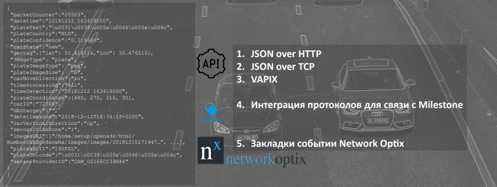 • API для бесплатной интеграции по HTTP Multipart POST (JSON), TCP-IP, ONVIF, VAPIX