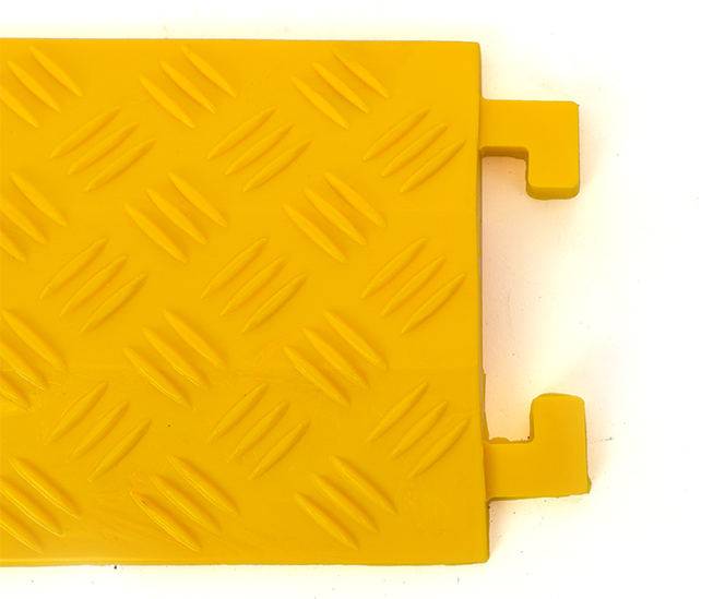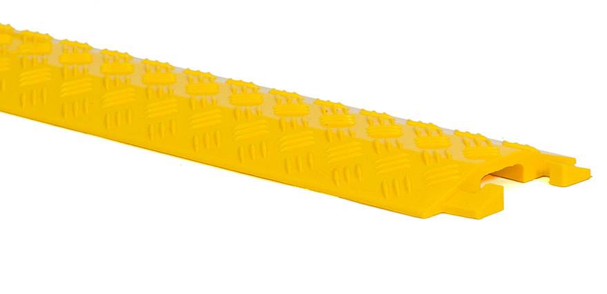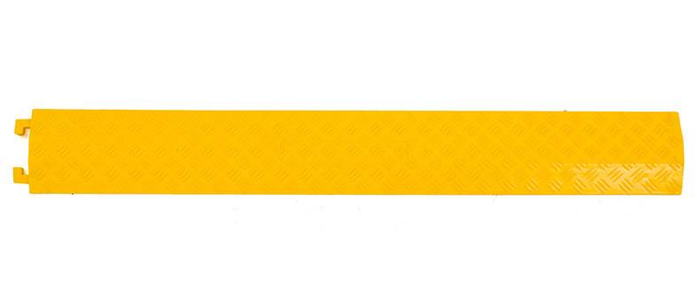 Кабель-канал ККП 2-12 - формовое изделие из эластичного пластика желтого цвета. С верхней стороны имеет протектор для предотвращения проскальзывания колес. С Нижней стороны - желоб для прокладки кабеля. На концах имеются соединители типа "пазл". Необходимая длина кабель-канала достигается путем соединения нужного числа элементов.