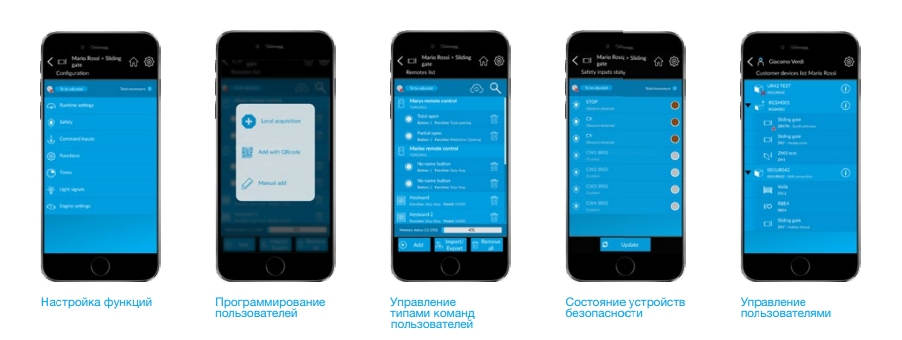 Приложение CAME SETUP доступно на семи языках, в том числе и русском, для iOS и Android. После быстрой загрузки приложения, монтажник сможет управлять оборудованием клиента, настраивать его, копировать и восстанавливать настройки конфигурации, обновлять и видеть информацию о возможных ошибках и количестве произведенных циклов.