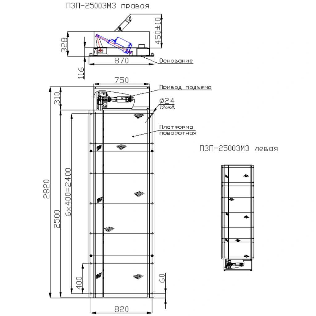 Привод подъема ПЗП может находиться как справа, так и слева относительно движения транспорта в зависимости от условий подключения.