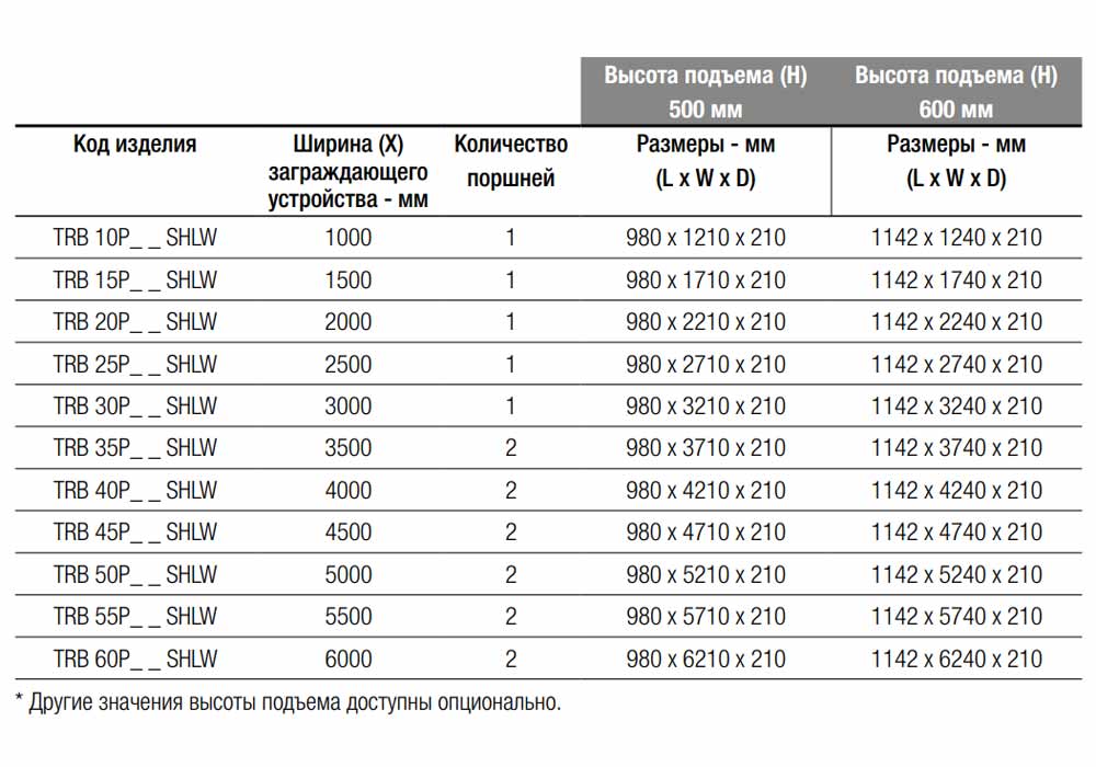 Стандартная работа ~ 3-5 с (подъем/опускание) в зависимости от размеров дорожного заграждения.