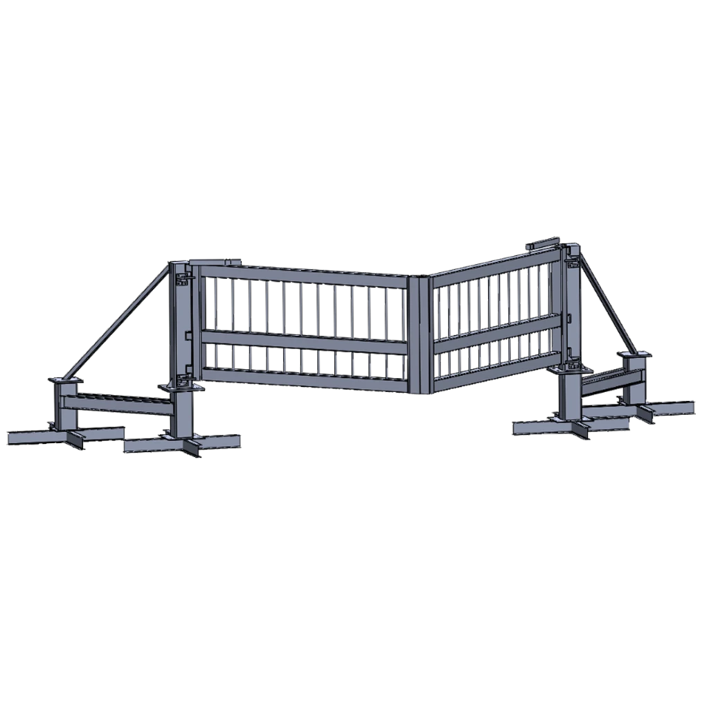 - Ворота приводятся в действие при помощи гидравлических/ электромеханических приводов. В случае необходимости предусмотрена возможность ручного открытия.