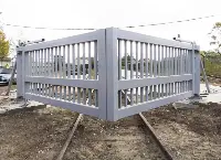 - Все противотаранные устройства для железнодорожного транспорта имеют клиновидную форму (ворота Кашалот, Скала, представленные на российском рынке). Створки ПВЖ-СБ также располагаются под углом, близким к 90° относительно друг друга.