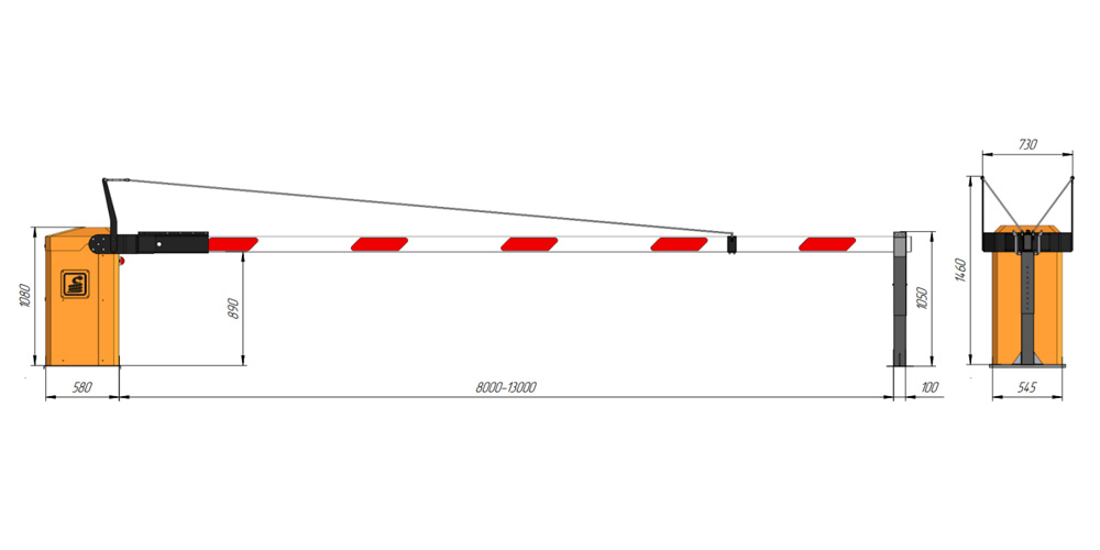 Шлагбаумы Титан предназначены для регулирования движения транспорта на сверх широких проездах: от 8 до 9 метров.