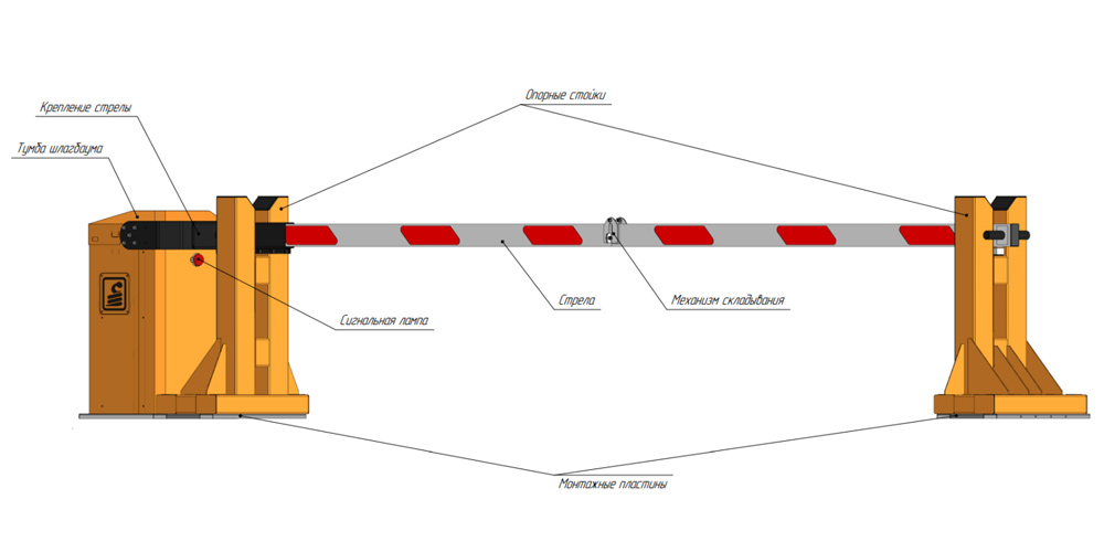 Стрела выполнена из стальной профильной трубы 120х60 мм с тросом внутри и со светоотражателями длиной 4,5 м.