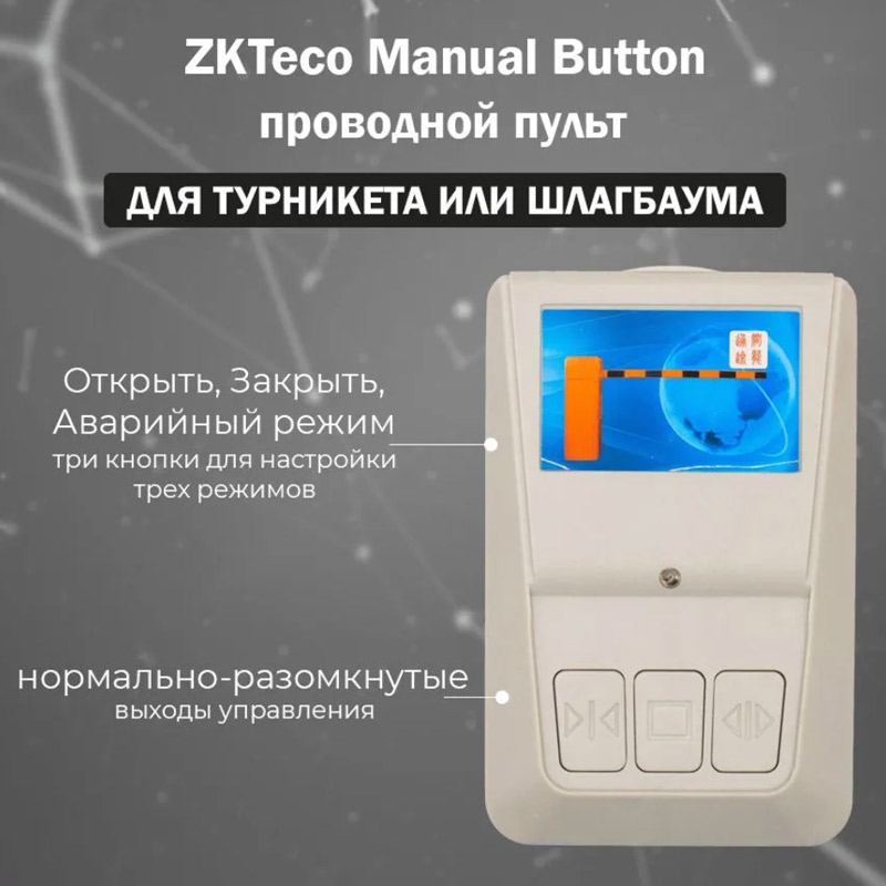 ZKTeco Manual Button - пульт управления универсальный (3 кнопки), может использоваться для управления любыми исполнительными устройствами: турникетами, шлагбаумами, электрозамками и т.д
