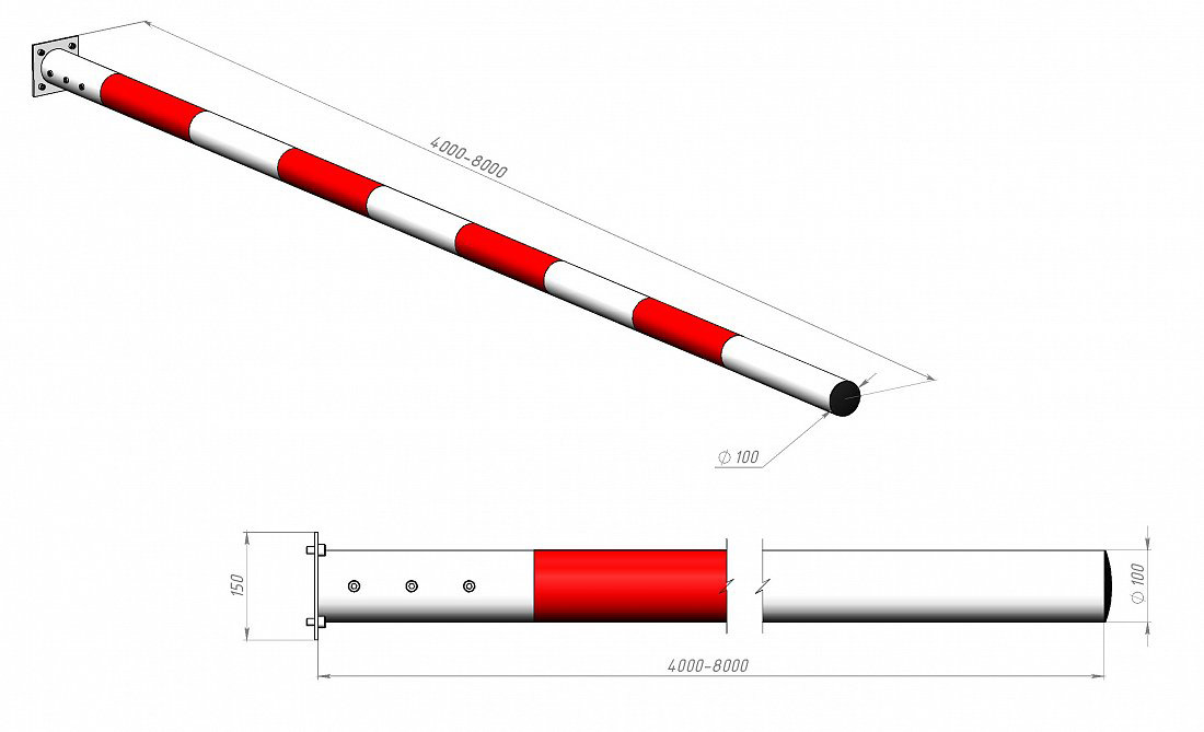 Стрела шлагбаума K6(100) круглого сечения с функцией антиветер выполнена из прочной алюминиевой трубы и обладает высокой стойкостью к ветровым нагрузкам.