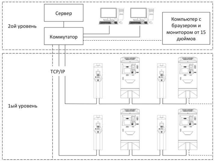 • Устройства (кассы и стойки) с базой данных 1-го уровня