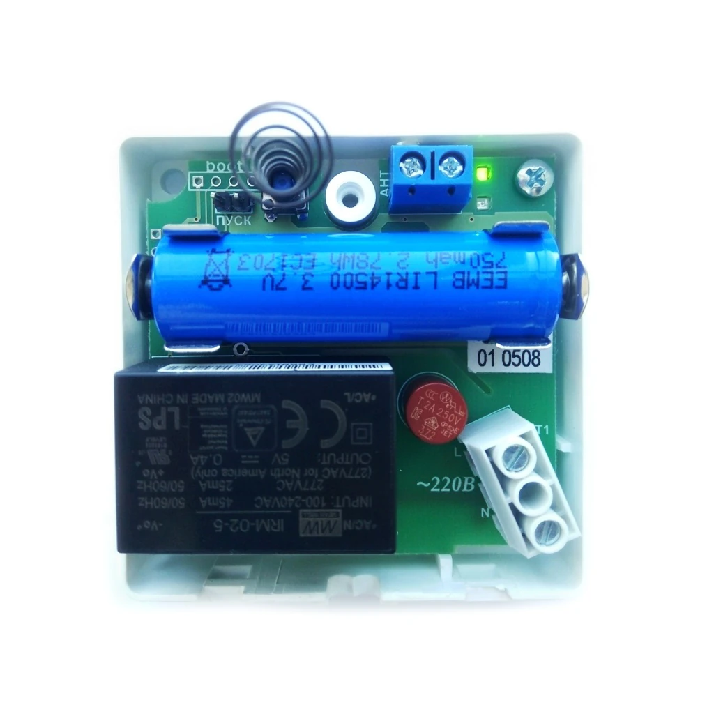 - Питание от сети 230 В с резервным аккумулятором 3,7 В, 750 мА·ч.