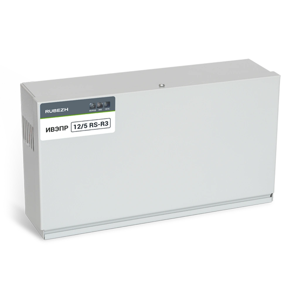 Источник вторичного электропитания резервированный адресный ИВЭПР 12/5 RS-R3 2×7 БР предназначен для бесперебойного электропитания средств охранно-пожарной сигнализации и контроля доступа постоянным напряжением 12 В. Резервирование осуществляется от двух герметизированных свинцовых аккумуляторных батарей номинальным напряжением 12 В, емкостью 7 А·ч, устанавливаемых в корпус источника. При отключении сети устройство обеспечивает работу потребителей от АКБ, контролируя их состояние и защищая от глубокого разряда.
