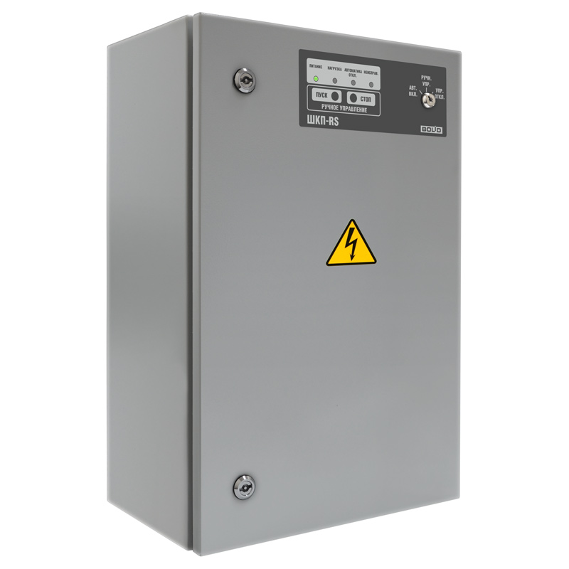 - Возможность работы в режимах ручного и автоматического управления. В автоматическом режиме шкаф управляется по интерфейсу RS-485