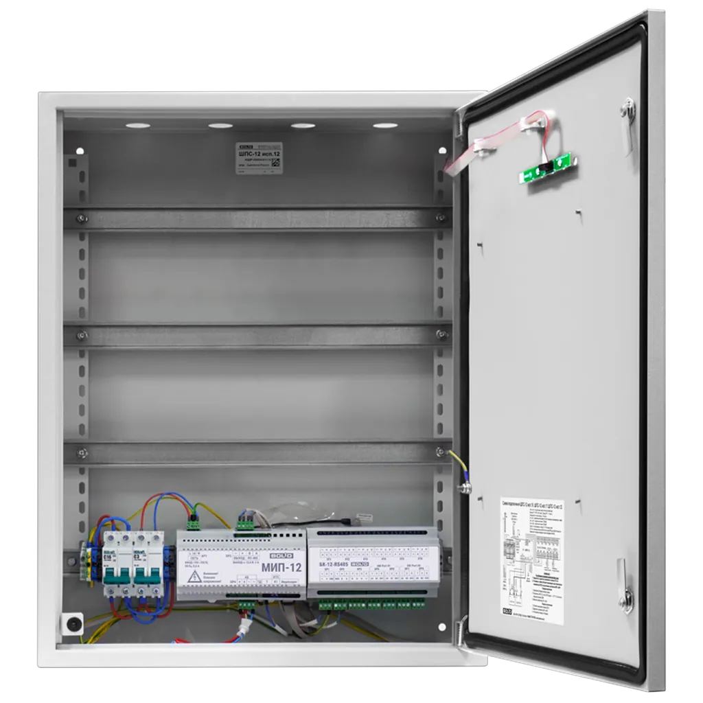 ШПС-12 исп.12 имеет степень защиты корпуса IP54.ШПС предназначены для размещения в них приборов пожарной автоматики, приёмно-контрольных приборов охранно-пожарной сигнализации, обеспечения их напряжением питания 12 В, обеспечения связи приборов по интерфейсу RS-485 между собой и внешними контроллерами с учетом требований СП 484.1311500.2020. ШПС рассчитаны на совместное использование с ППКУП "Сириус", пультом контроля и управления охранно-пожарным "С2000М" и их исполнениями.