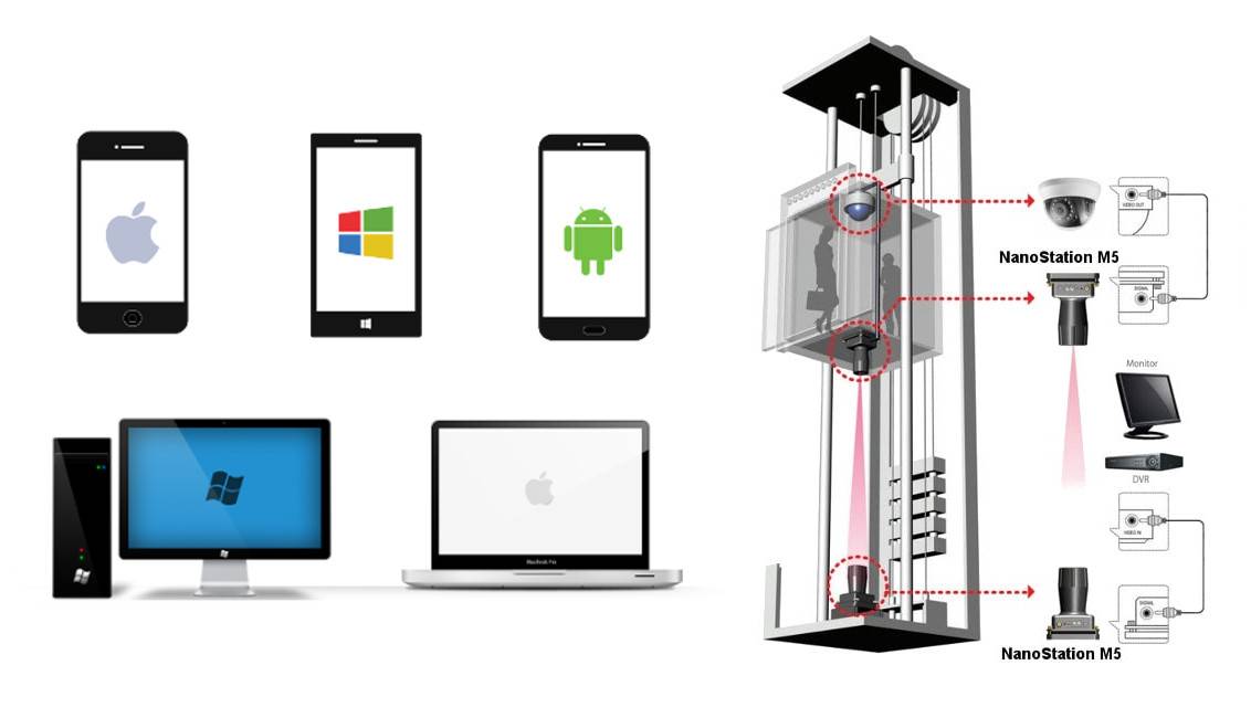 Мы рекомендуем использовать Wi-Fi точки доступа на частоте 5 ГГц. Это позволит избежать негативного влияния электромагнитных помех которых в лифтовой шахте хоть отбавляй. И добится надежной передачи сигнала, так необхлдимой для видеонаблюдения.