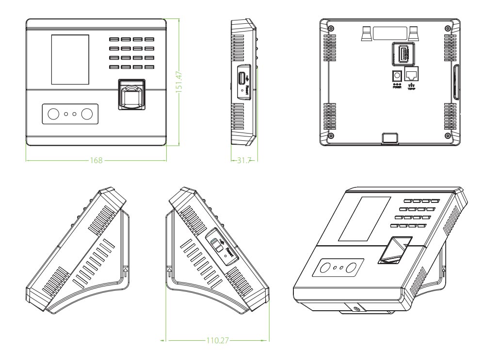 • Функции: ADMS, SSR, DTS, Звонок по расписанию, запрос на самообслуживание, автоматическое переключение статуса, ввод Т9 клавиатурный ввод ID пользователя (9 знаков)