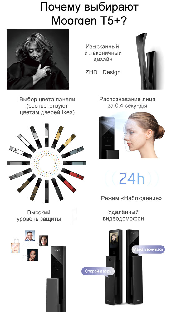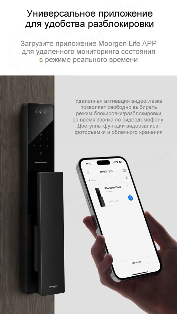 • Премиальные умные электронные замки Moorgen T5+ на аккумуляторной батарее.