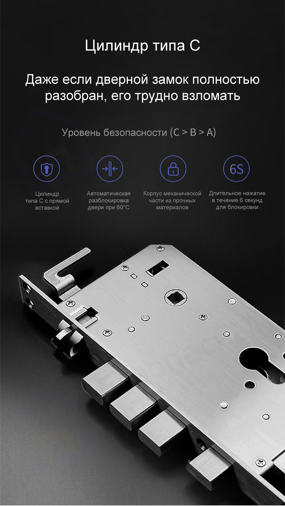 • Способы открытия: Отпечаток пальца, распознавание лица, пароль, IC-карта, NFC, приложение, ключ