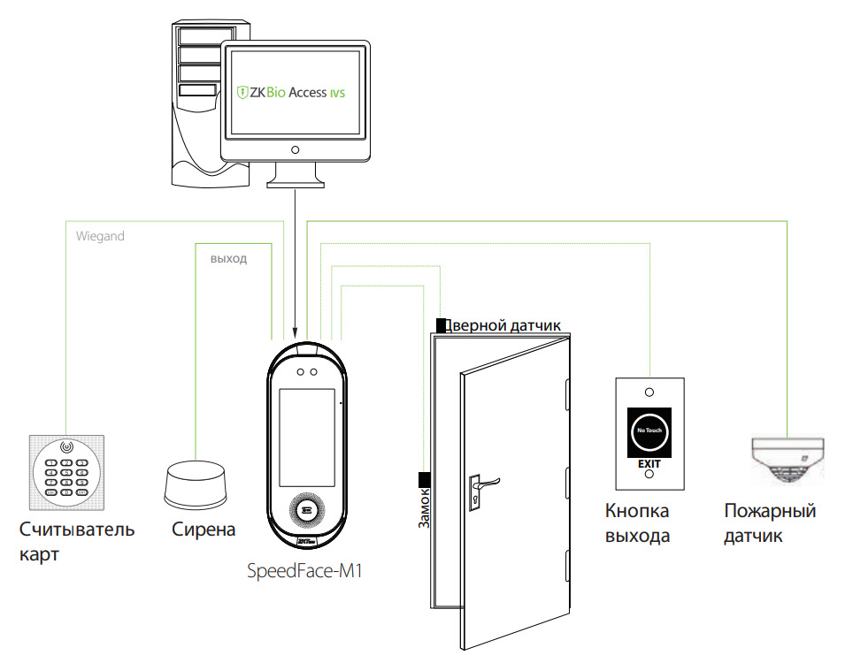 • Связь: TCP/IP, Wi-Fi (опция), RS485, Wiegand вход/выход