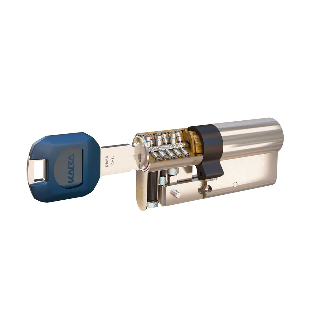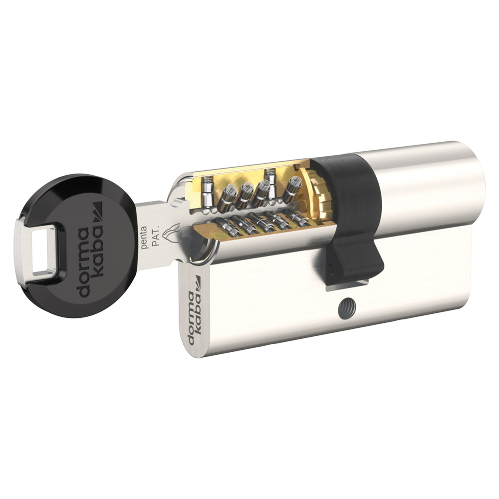 Модель dormakaba penta имеет cамый высокий уровень защиты: 22 пары пинов расположенных в 5 рядов на 85 возможных позициях гарантируют высочайший уровень секретности механизма – 867 трлн комбинаций и огромные возможности по созданию мастер-систем любого уровня сложности. А опция защиты от перелома LAM делает его максимально защищенным от всевозможных методов взлома и вскрытия.