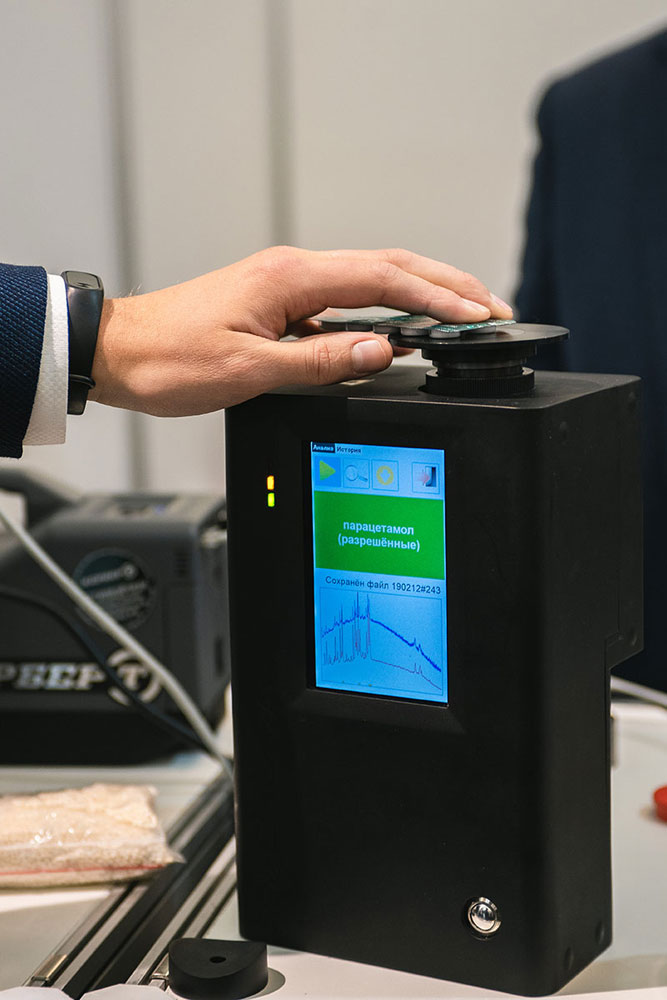 Распознаёт химические и биологические агенты в жидком, твердом и сыпучем виде методом спектроскопии комбинационного рассеяния — без необходимости отбора проб и непосредственного контакта с веществом, в том числе через герметичный контейнер.