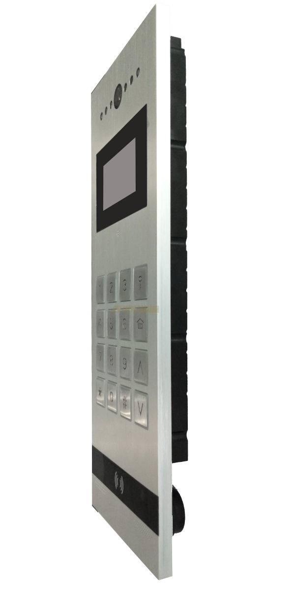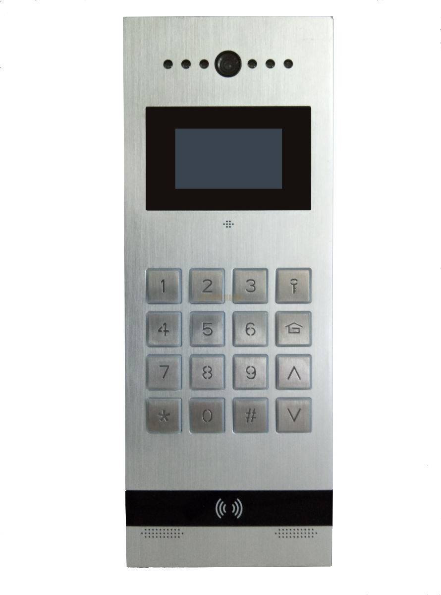 Вызывная панель цветного многоквартирного домофона со встроенным считывателем карт Em-marin. Прочный алюминиевый корпус. Анимированный TFT дисплей. Простое подключение с помощью разъемов RJ-45 (подключение по стандарту T568B). Управление замком. Подключение датчика положения двери. Выход Wiegand-26 для подключения к стороннему контроллеру СКУД.