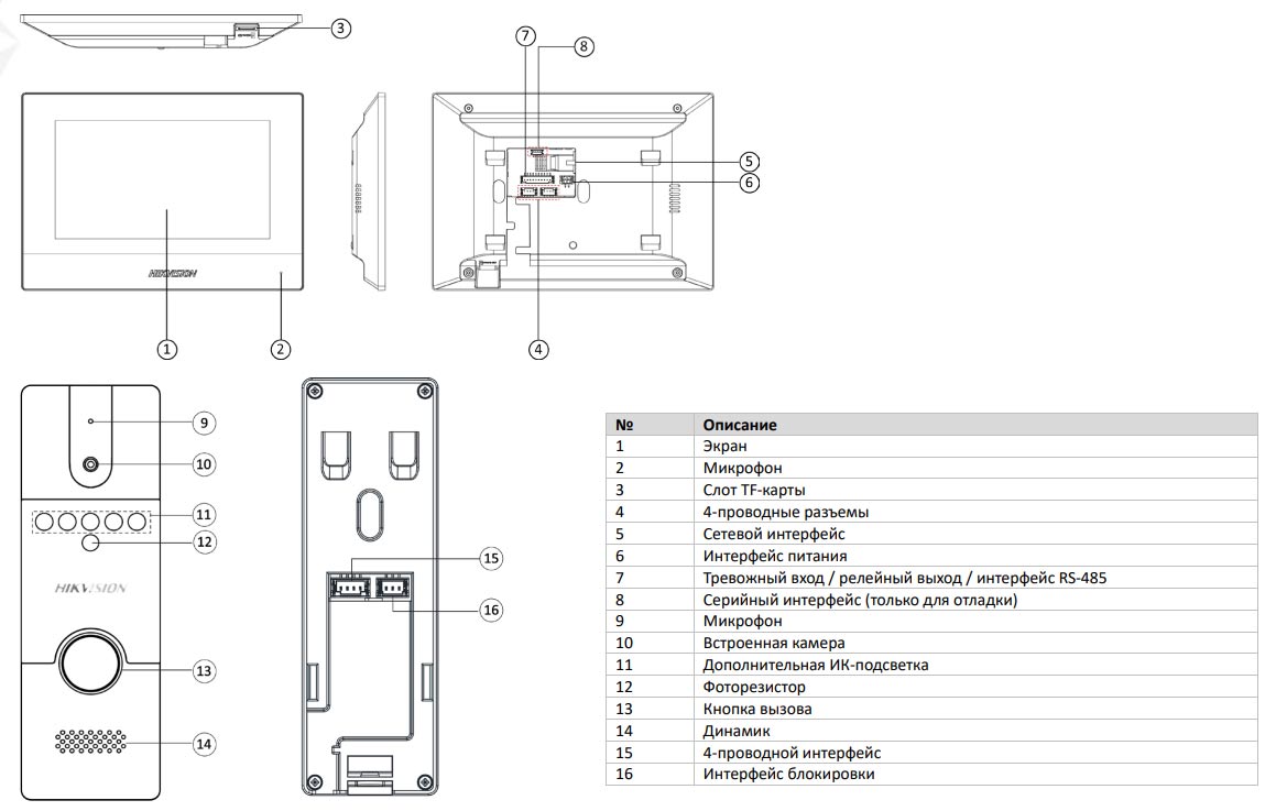 Интерейсы видеодомофона