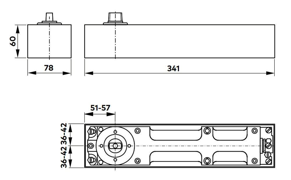 Для снижения вероятности коррозии dormakaba рекомендует использовать герметик dormakaba 2300 для заполнения пространства между телом доводчика и цементной коробкой..