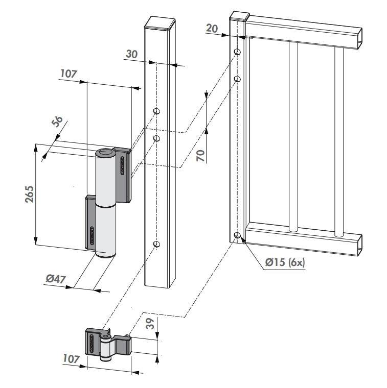 • В комплект входит петля PUMA в алюминиевом корпусе с порошковым покрытием