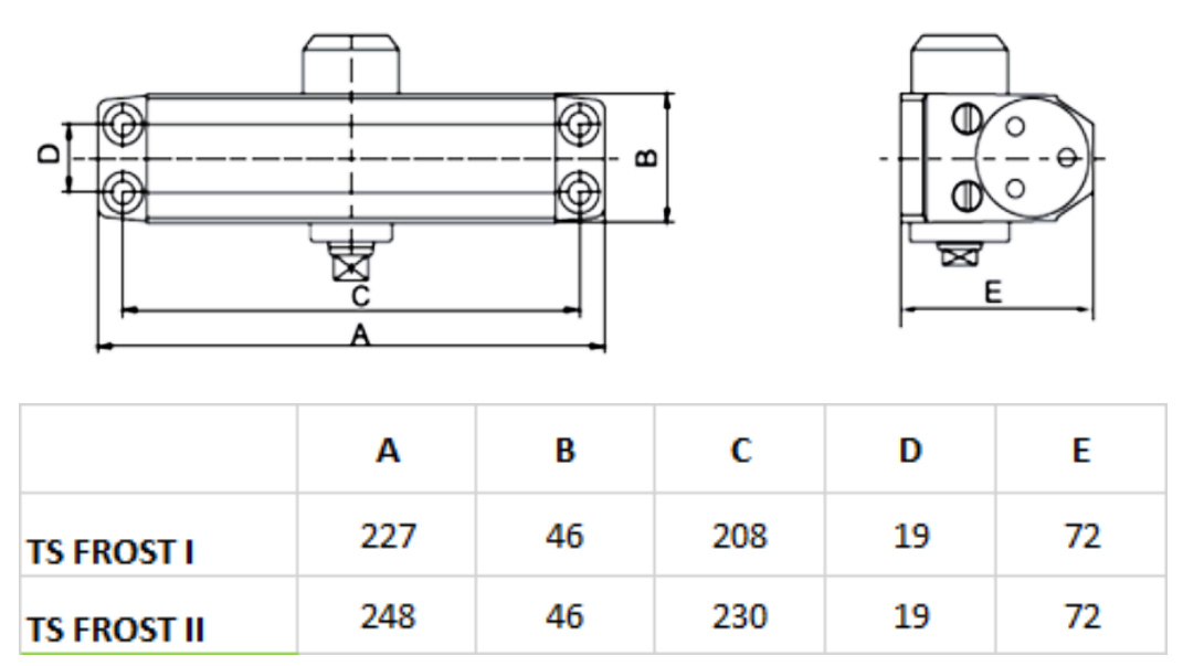Доводчики линейки TS FROST отвечают большинству требований к дверным доводчикам для входных дверей, делая закрывание двери плавным и комфортным, даже в условиях холодного климата, сохраняя оптимальную производительность.