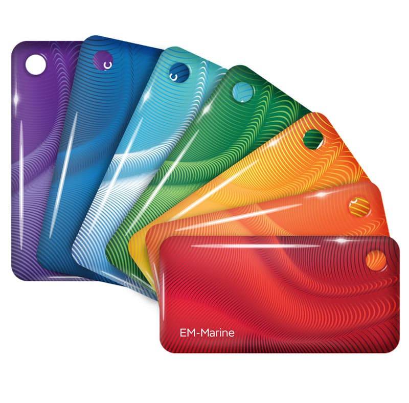 Как и стандартная смарт-карта, брелок содержит в себе чип с антенной, соответственно может выполнять все те же функции, что и привычная смарт-карта. Основные отличия брелока Em-marine от стандартной смарт-карты – значительно меньшие размеры (24,6х51 мм) и защитное покрытие из специально разработанного композитного материала, что делает его компактным и износостойким. Для удобства крепления брелок имеет отверстие для кольца, цепочки или карабина.